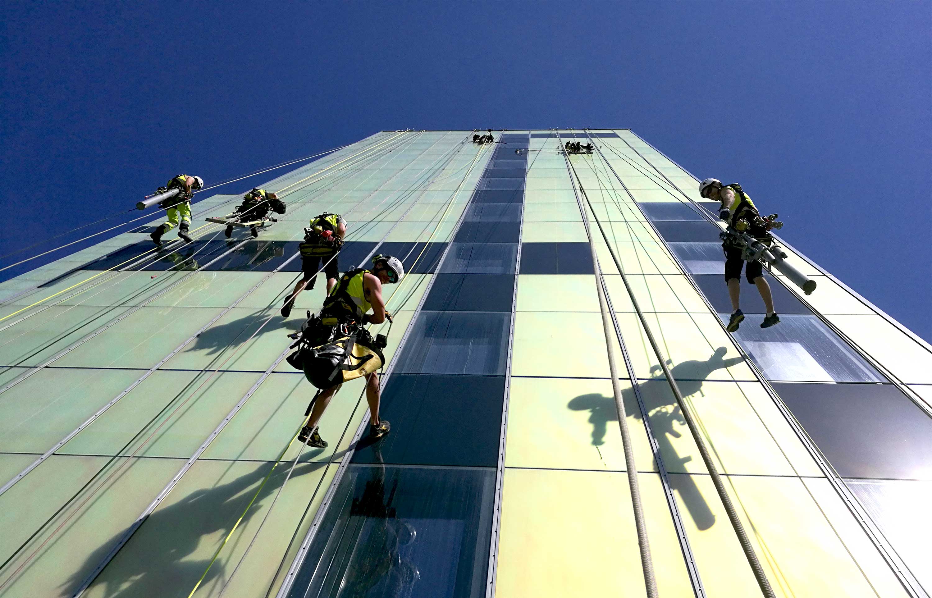Vi utför hela glasmontage och byter ut skadat glas på alla typer av fastigheter. Med hjälp av rep kommer vi enkelt åt på hög höjd utan långa och kostsamma uppstartstider eller ställningar. Glasmontage via rep är en säker och effektiv metod som förenklar arbetet och kan spara in kostnader för dyra kranar.